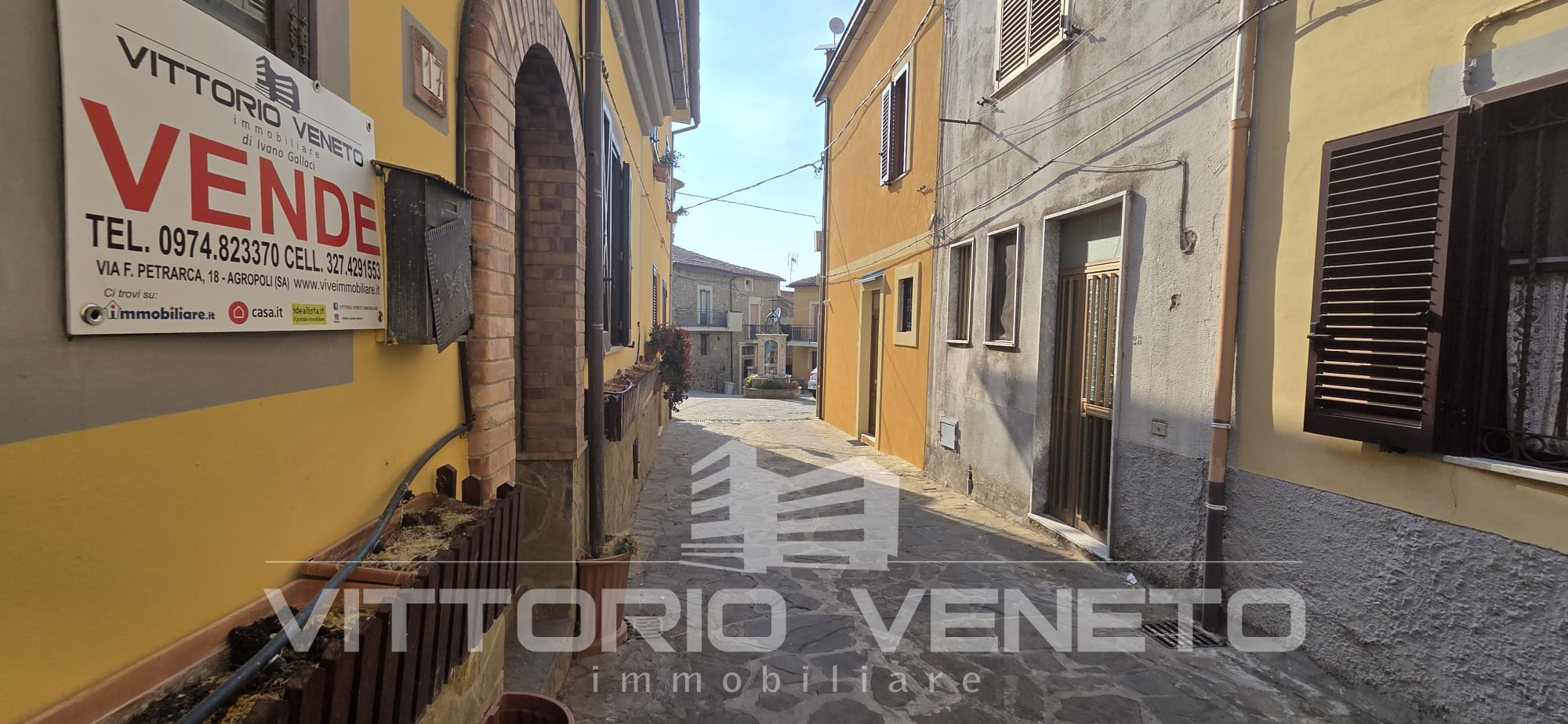 Laureana Cilento (Sa), in Via San Cono, zona centrale, a 7 km circa da Agropoli e circa 10 km da Santa Maria di Castellabate, villetta indipendente su 2 livelli (T-1) di 159 mq in buone condizioni interne ed esterne. Ingresso su strada, al piano terra, in ampia zona giorno con camino caldaia ed angolo bar, cucina abitabile, disimpegno, bagno, ripostiglio ed accesso alla cantina. Dalla scala del soggiorno, saliamo al piano 1° con disimpegno, bagno, 2 camere da letto, 2 ripostigli, lavanderia e sottotetto. Infissi interni in doppio vetro PVC. Riscaldamento autonomo. Condizionatori.